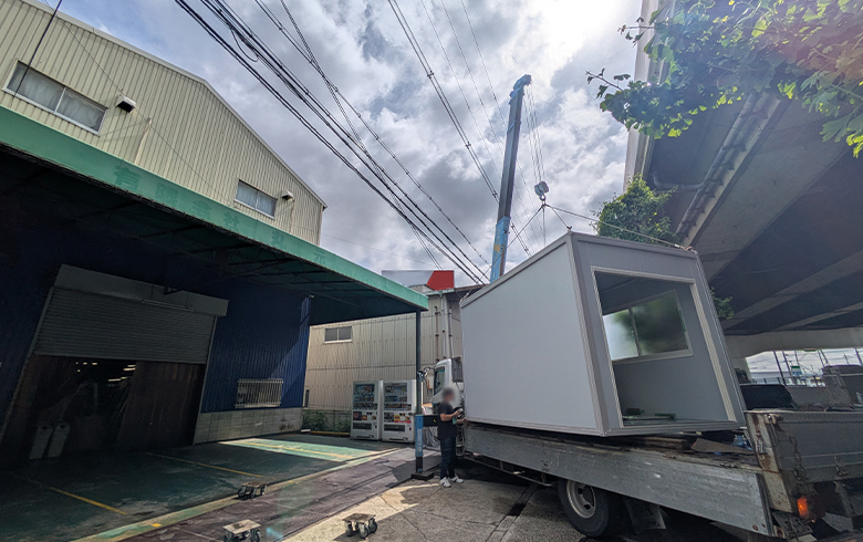 納品当日は、スムーズにお客様のご希望の位置にユニットハウスを設置することができました。