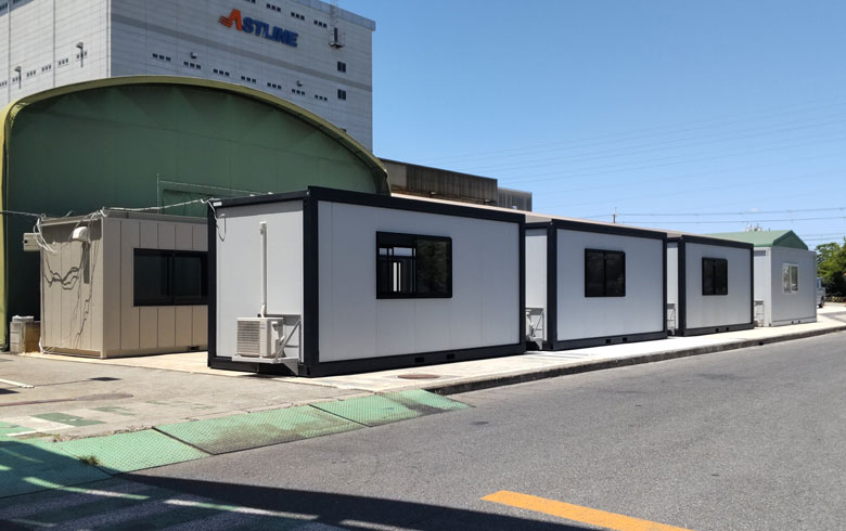 年始に相談いただき、設置場所・配置・間取り等を現地で打ち合わせしました。ユニットハウス4坪タイプ(エアコン付)7棟・ロッカー3人用55台(165人分)・消火器7本を手配しました。