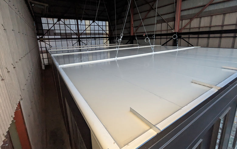 組立式パネルハウスK-spaceは、ユニットハウスの設置が困難な軒下や建屋内にも設置可能です。