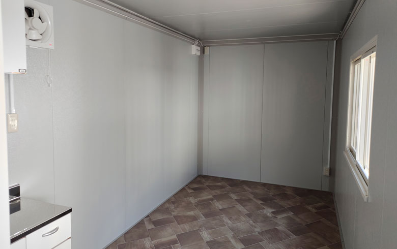 お客様に設置場所の状況やユニットハウスの使用用途を確認させていただいたところ、「設置場所には下水がない」「展示品のユニットハウスでは若干狭い」との事でしたので、堺展示品AC-3型をベースにしてオーダー品でAC-4型へサイズUPし、水洗トイレをシャトレ式に変更したユニットハウスを提案して採用いただきました。