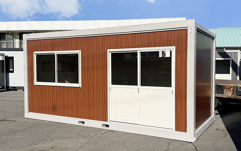 | 店長のコメント | オリジナルユニットハウス A-space AG-4型(7.6畳)です。 木目柄ダークブラウンのパネルを使用した、スタンダードな間取りの商品です。 頑丈な鉄骨フレームを採用しているため、ご希望で2階建てにすることも可能です。 全て新品の部材を使用しておりますが、製作・運搬・設置時に小キズや凹み等つく場合がございますので、アウトレット品扱いとしています。 掲載価格は商品代金のみとなり、別途運搬費・設置工事費等が必要になります。 受注生産品となりますので、詳しくはお問い合わせください。 |