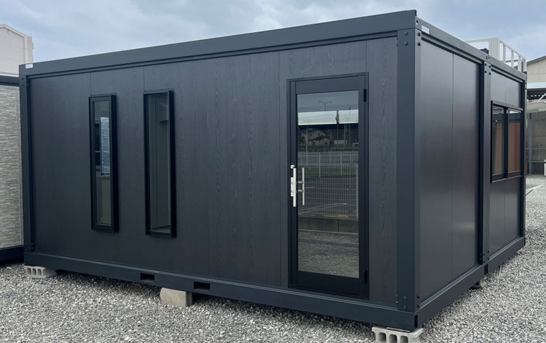 | 店長のコメント | オリジナルユニットハウス A-space AG-8型(15畳)です。 人気のフルブラックのカラーリングで落ち着いた印象を与えるこちらの商品は、事務所や店舗、休憩室としてご使用いただける人気のサイズです。 頑丈な鉄骨フレームを採用しているため、ご希望で2階建てにすることも可能です。 全て新品の部材を使用しておりますが、製作・運搬・設置時に小キズや凹み等つく場合がございますので、アウトレット品扱いとしています。 掲載価格は商品代金のみとなり、別途運搬費・設置工事費等が必要になります。 受注生産品となりますので、詳しくはお問い合わせ下さい。 |