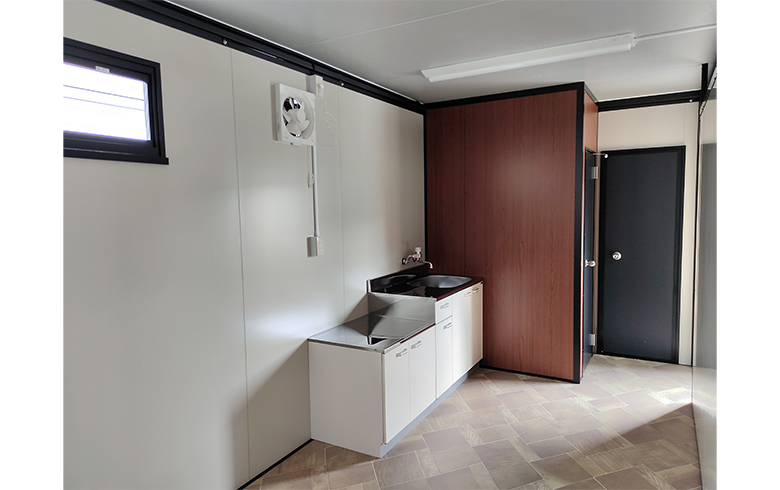 ユニットハウス15.1坪タイプ(トイレブース・ミニキッチン付・玄関デッキ仕様)