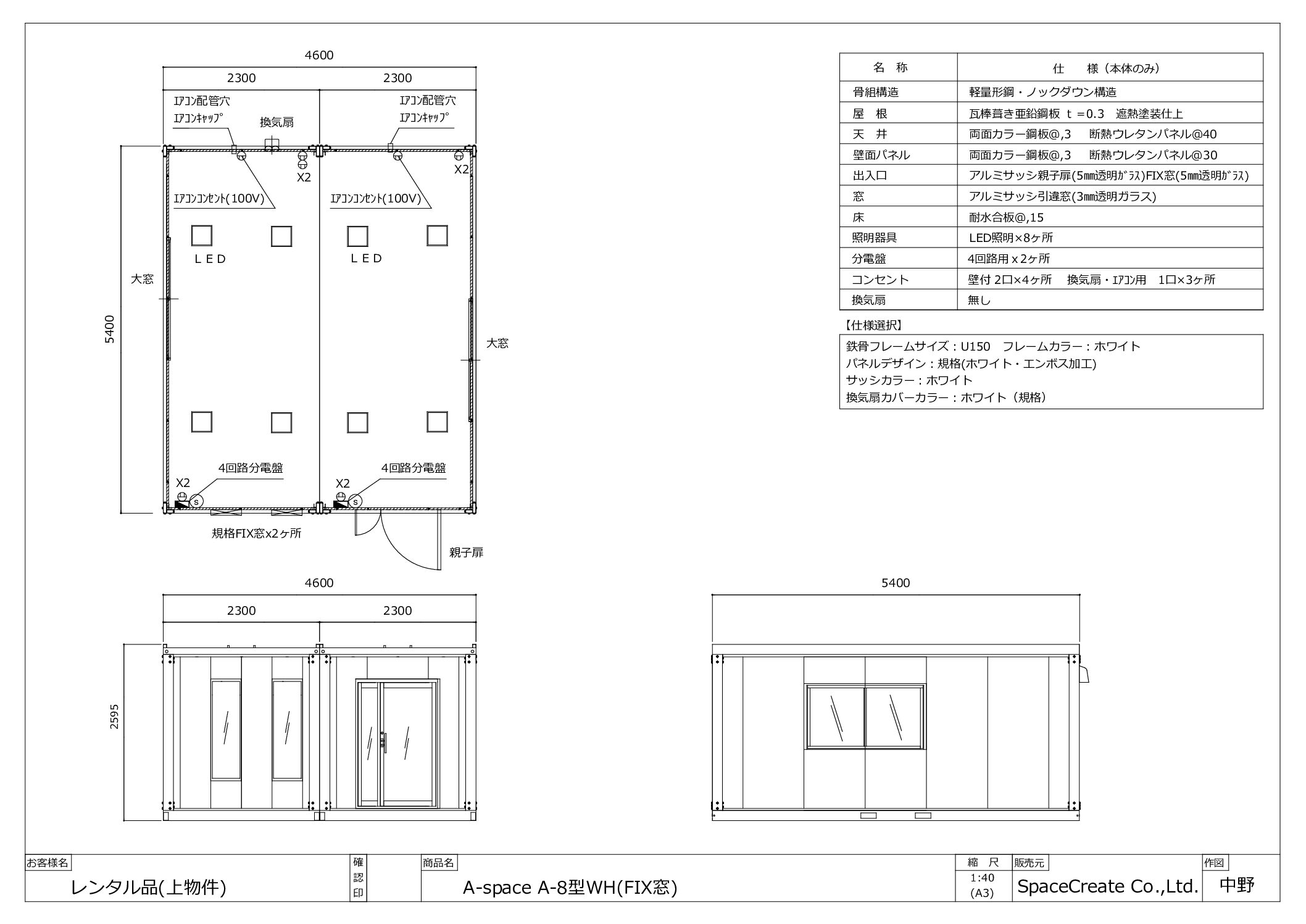 | 寸法外寸 | 幅:5400mm × 奥行き:4600mm × 高さ:2600mm |